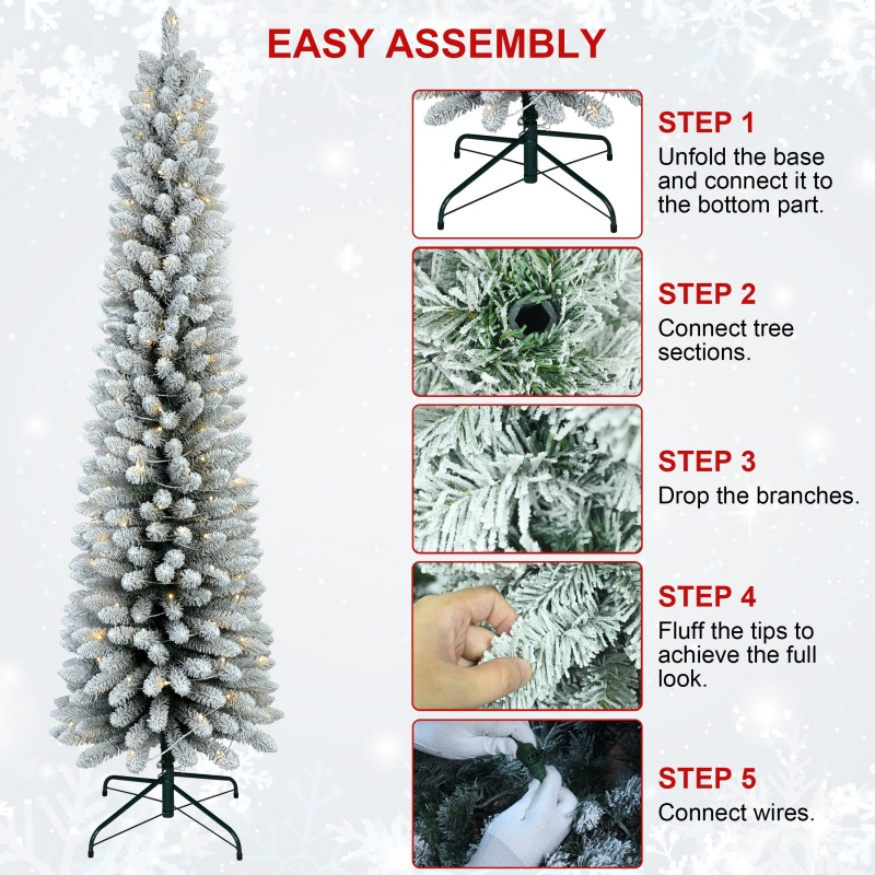 Pre-Lit Flocked Pencil Christmas Tree – 5FT/6FT/7FT